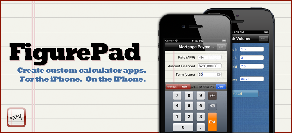 Includes a Library to get you started! FigurePad comes with nearly a dozen calculators to get you started, including: Home Mortgage Calculator, Car Payment Terms, Temperature Conversion, BMI and Cholesterol Calculators